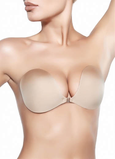 The bra with a unique cleavage-enhancing shape! The S-Style gives you the perfect cleavage with its unique S-shape cleavage enhancer and special circle-covers for your nipples. It is thin, lightweight and seamless, and its luxurious fabric makes it super comfy! Available in both Nude and Black and can be used up to 50 times! Sizes A/B, B/C, C/D.